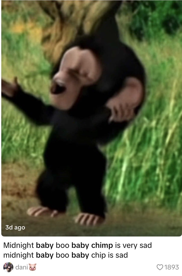 There was a little chimp who looked at the sky. He didn't want bananas from the tree, he wanted the moon banana!